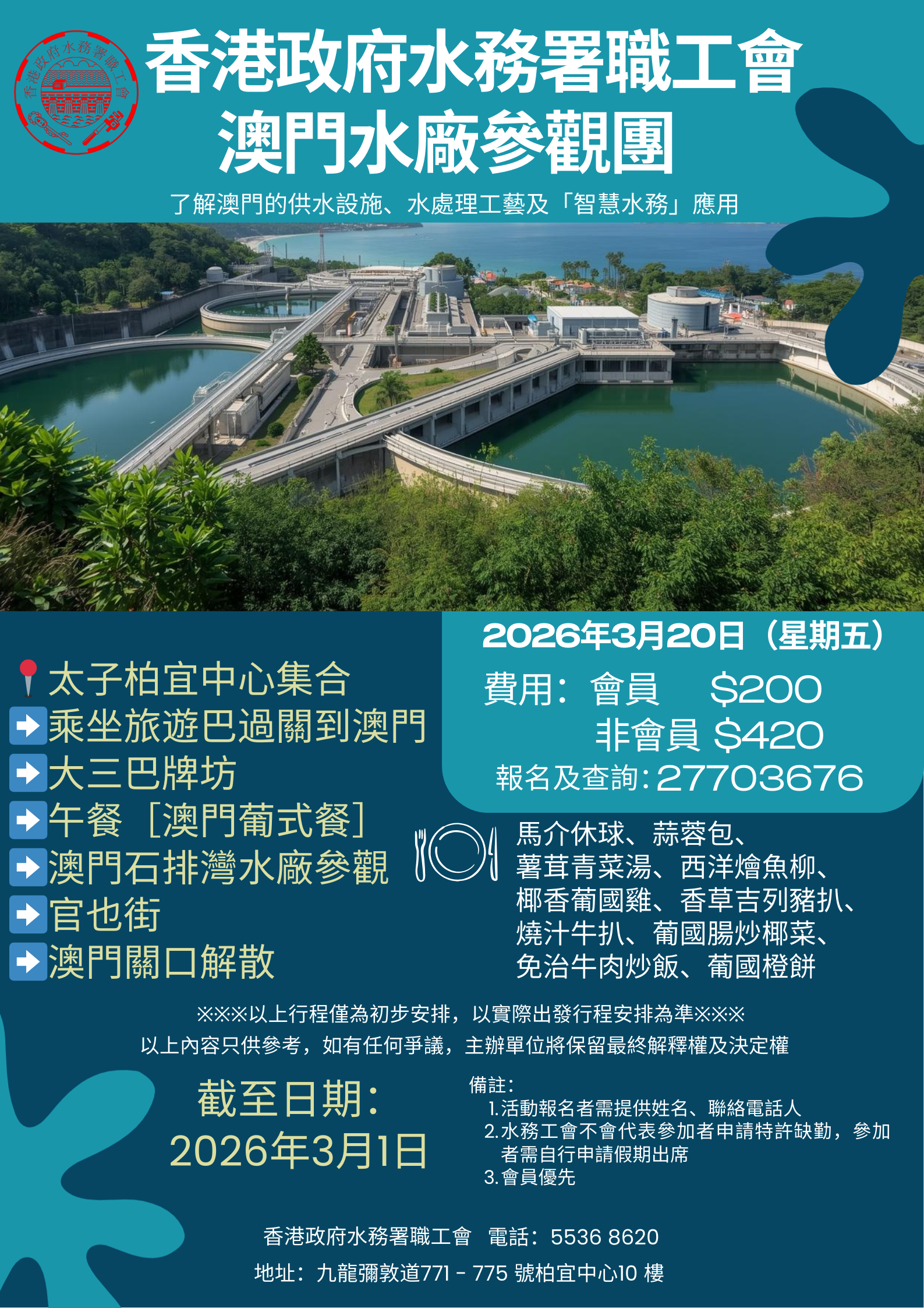 舉行日期: 2026年3月20日 星期五舉行地點: 澳門石排灣水廠